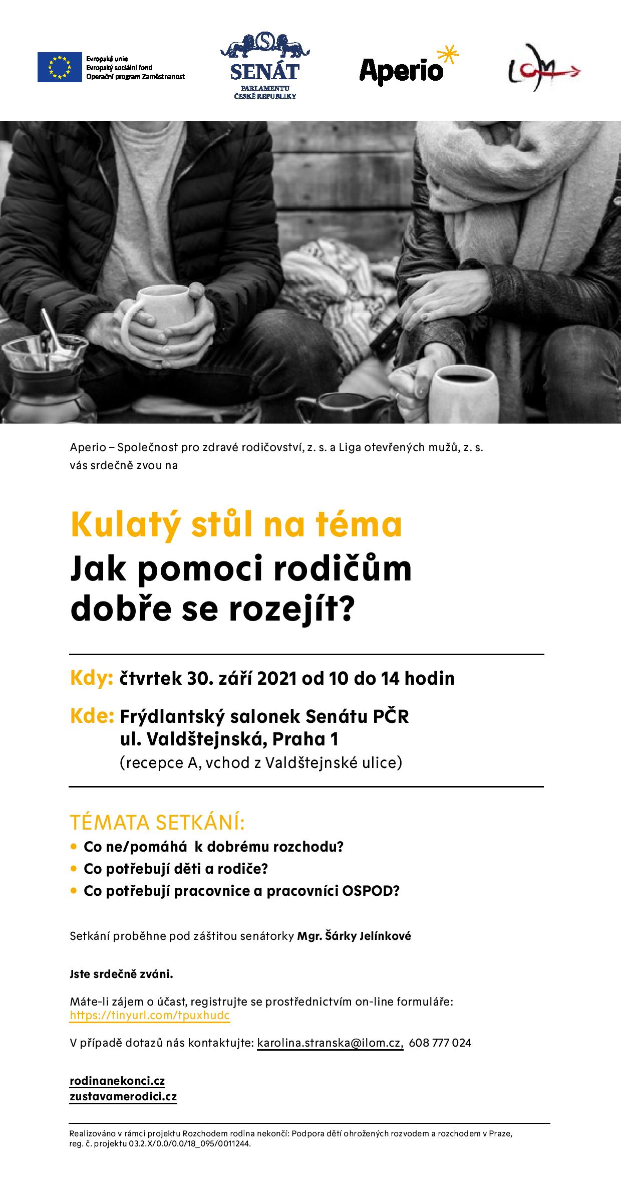 Zveme vás na kulatý stůl na téma rozchody rodičů, který pořádáme společně s Aperio – Společnost pro zdravé rodičovství. Akce bude 30. září.