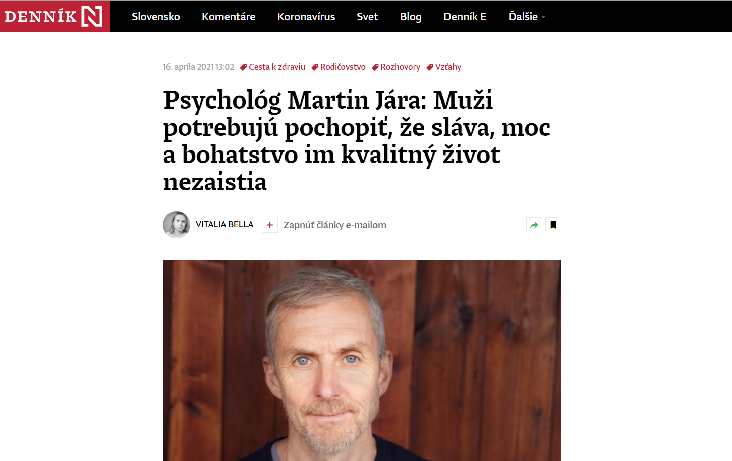 Mezi dalšími tématy se objevily dopady pandemie, výchova pěti dětí a hlavně, jak moc jsou důležité vztahy v životech mužů. Ať už rodinné, partnerské nebo kamarádské. Článek si můžete přečíst na stránkách Denníku N.