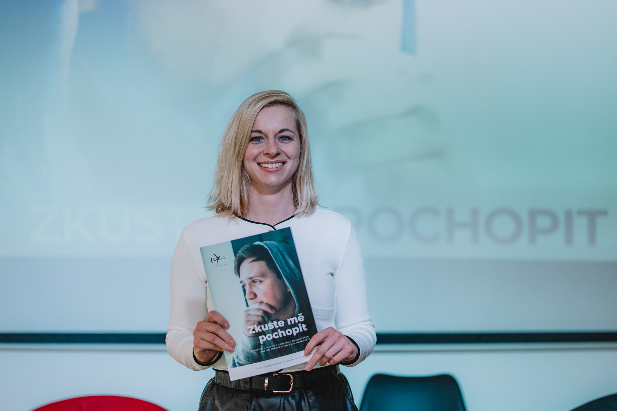 Jedním z hlavních bodů konference bylo představení naší nové terapeutické příručky Zkuste mě pochopit, podle níž konference dostala své jméno. Zabývá se prací právě s dospívajícími, kteří se potýkají s násilným chováním. Pro LOM je to důležitý milník – příručka se stane základem prvního specializovaného terapeutického programu pro mladé původce násilí v Česku, na kterém právě pracujeme.